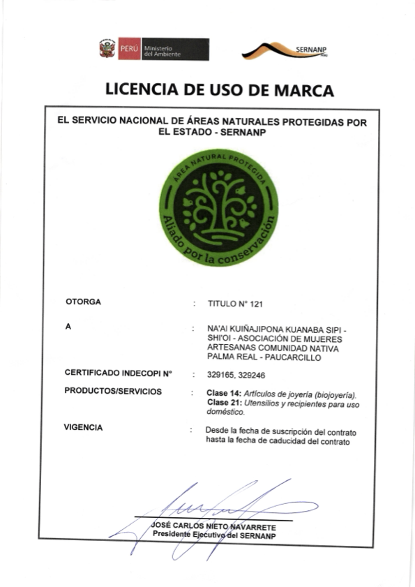 La Asociación de Mujeres Artesanas Na’ai Kuiñajipona Kuanaba Sipi – Shi’oi, de la Comunidad Nativa Palma Real (Paucarcillo), en Madre de Dios, es una organización que promueve la revalorización de los saberes ancestrales del pueblo Ese Eja a través de la artesanía tradicional.