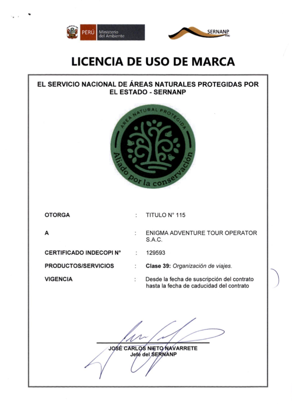 Como licenciataria de la marca Aliado por la Conservación, Enigma Adventure Tour Operator forma parte de una red de emprendimientos que promueven el turismo sostenible, contribuyendo a la protección del patrimonio natural y cultural del Santuario Histórico de Machupicchu.